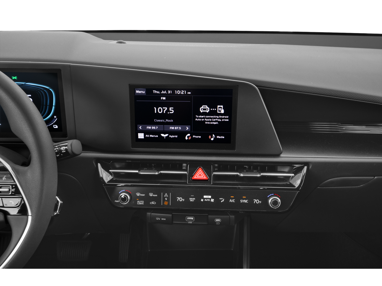 - Radio: AM/FM/HD -inc: 8" touchscreen display, 6 speakers, Bluetooth® w/audio remote control and voice recognition, wireless Android Auto and Apple CarPlay, standard sound system, USB connectivity and steering wheel audio controls